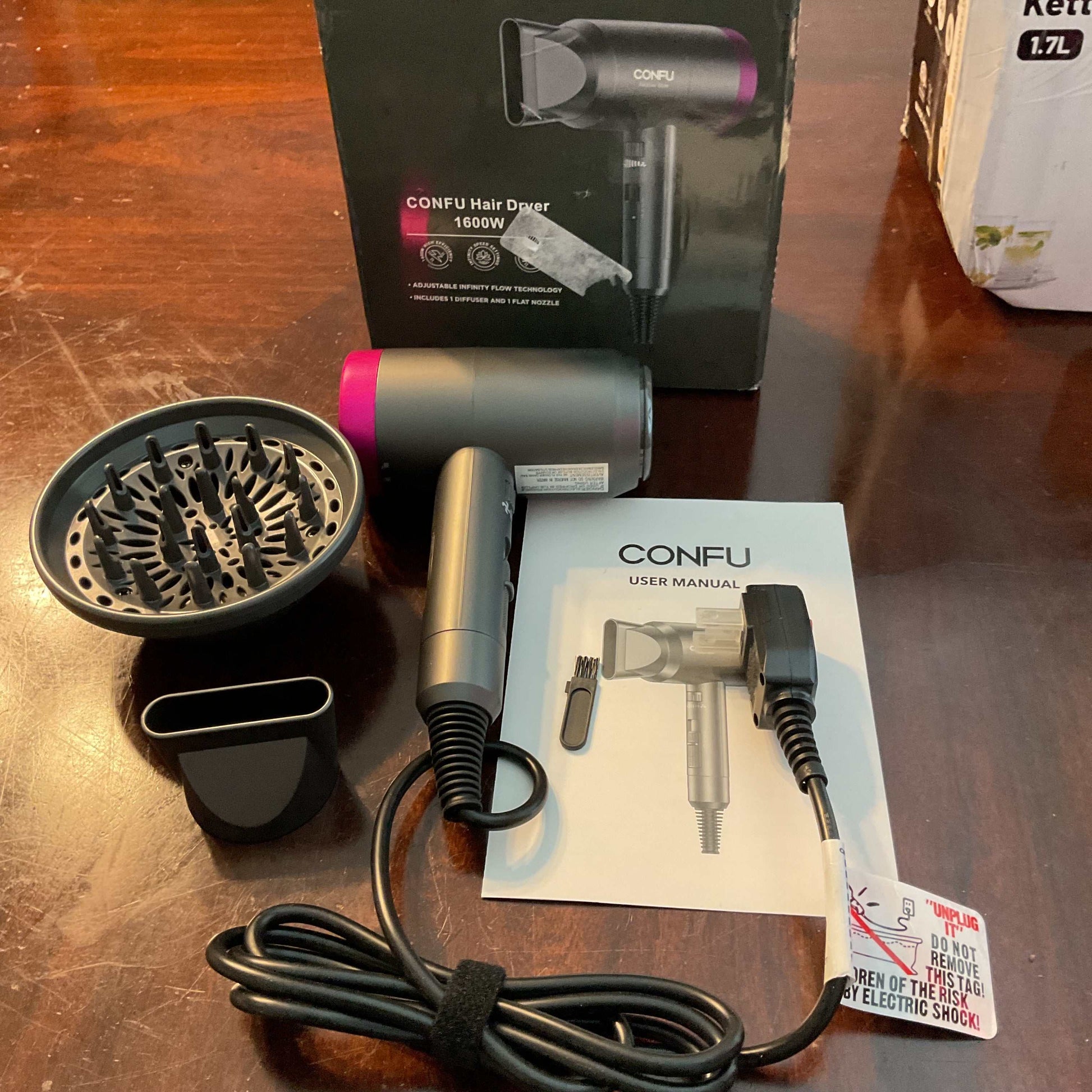 Confu Hair Dryer 1600W with Diffuser & Nozzle