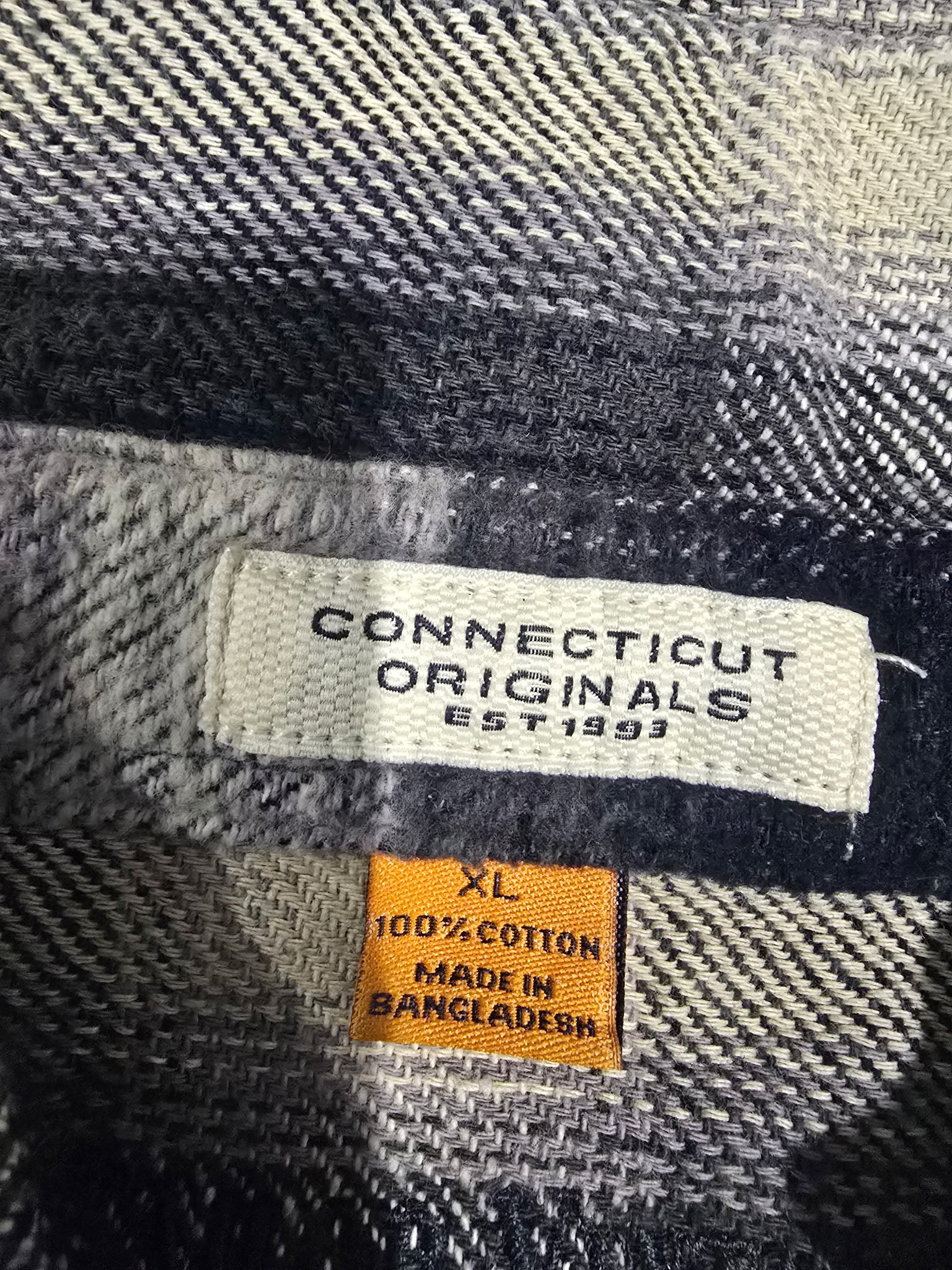 Connecticut Originals Men’s Flannel Shirt – Navy & Cream Plaid Long Sleeve (XL)
