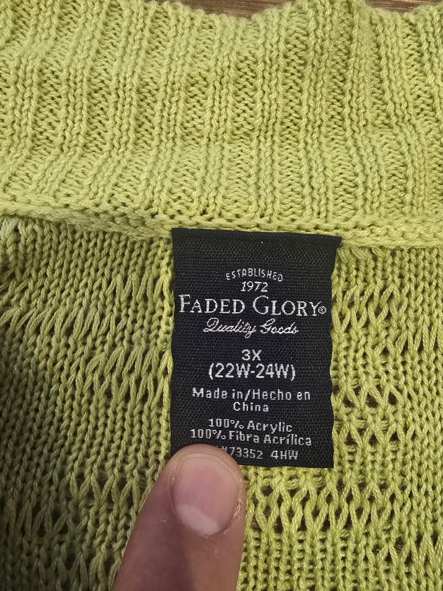 Pre-owned Faded Glory open-knit cardigan in size 3X. Lightweight acrylic, short sleeves, great layering piece.