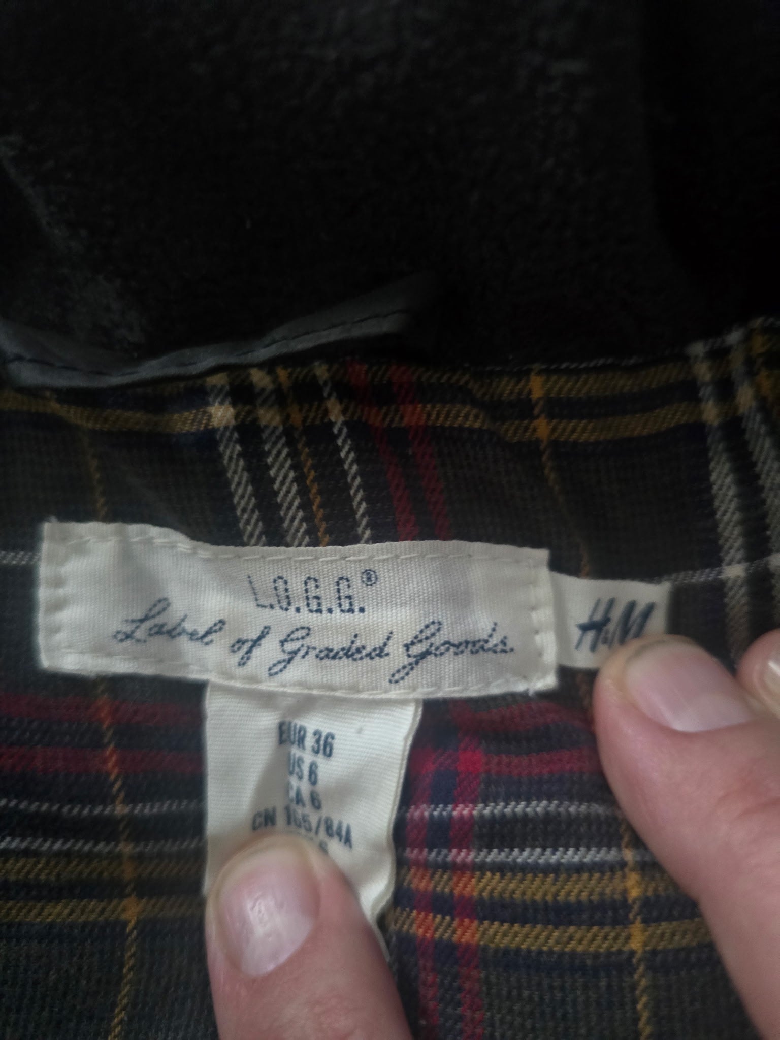 H&M L.O.G.G. Quilted Puffer Vest Black Brown Plaid Lined Women’s Size 6