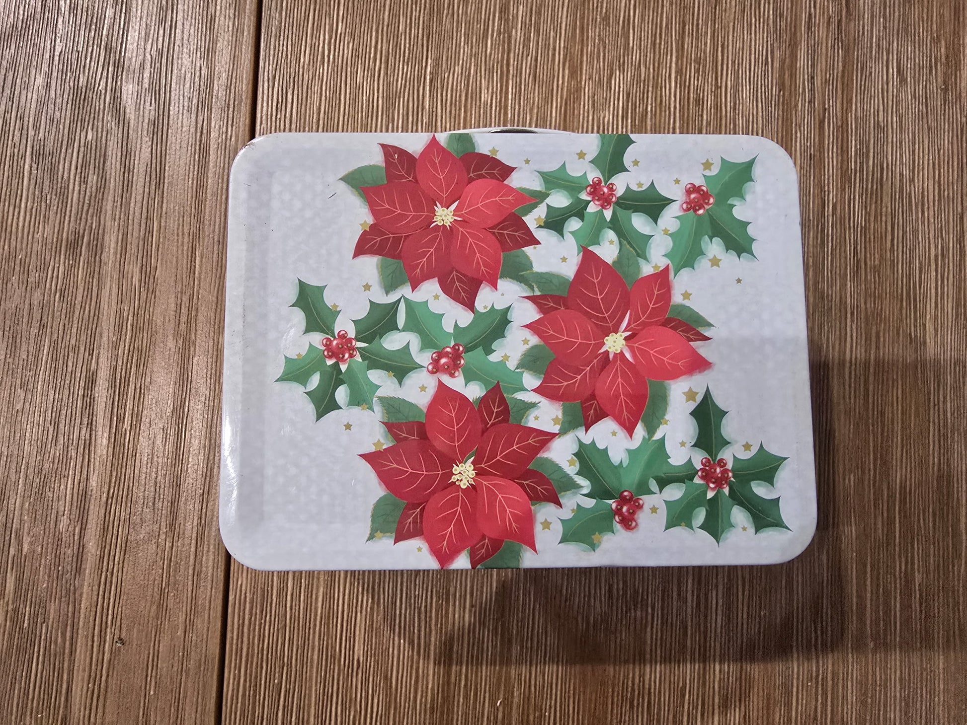 Poincietta Tin Small White Latched With Handle