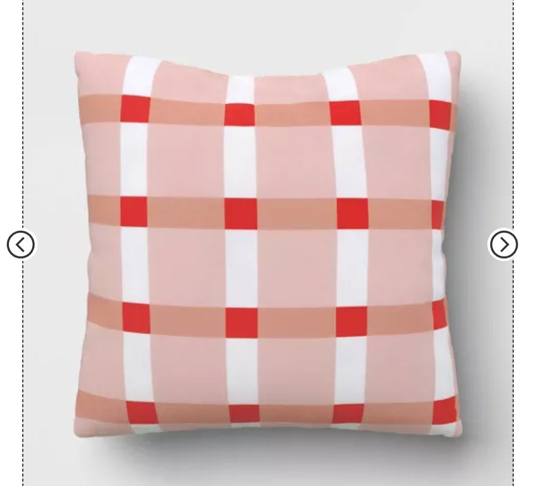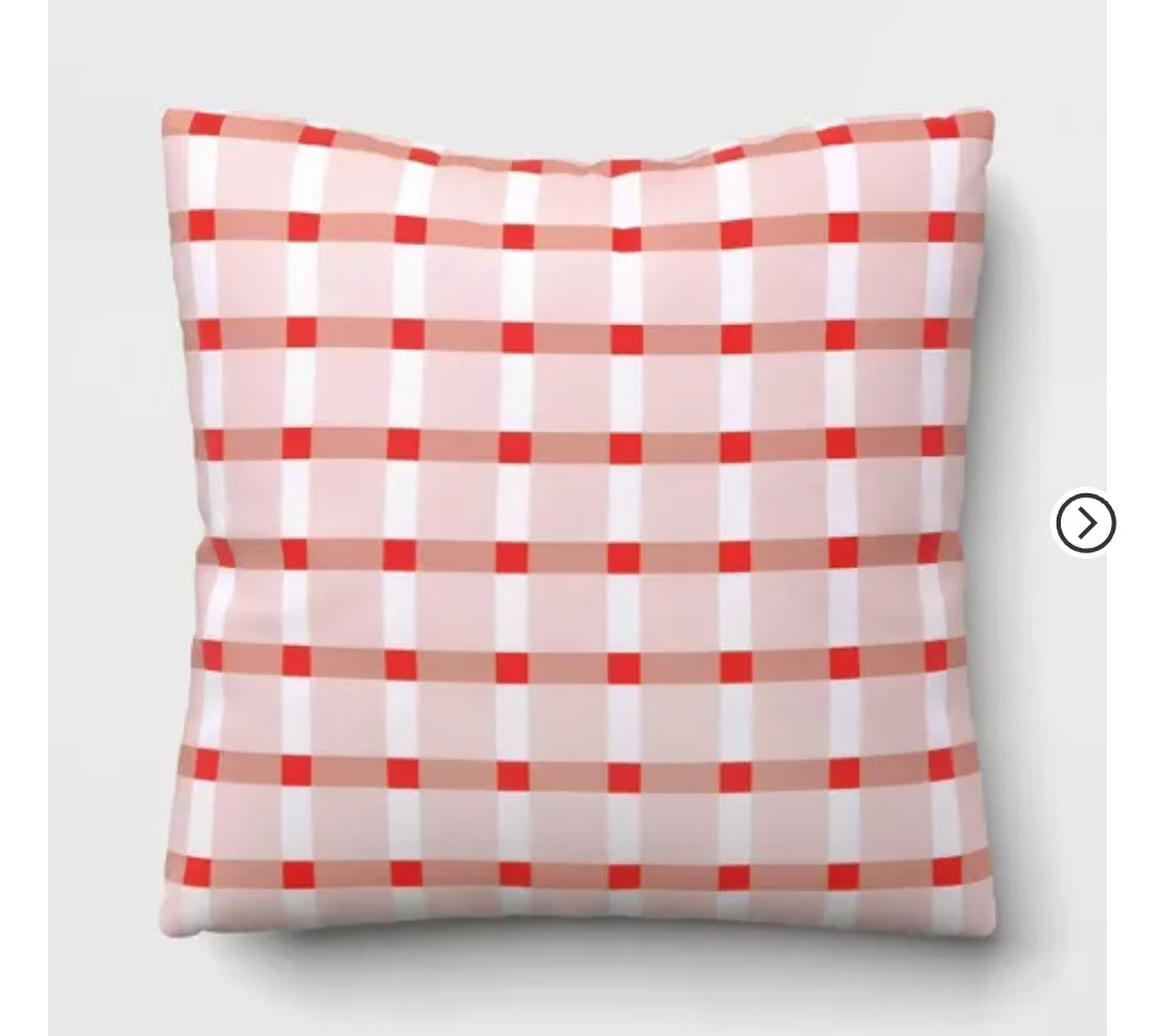 Add a cheerful pop of pattern to your patio or living space with this Room Essentials reversible outdoor pillow. Featuring a classic plaid design in red, blush, and white, this 17"x17" cushion offers soft comfort and durability for indoor or outdoor use. Perfect for refreshing your space or mixing with solid-colored pillows.