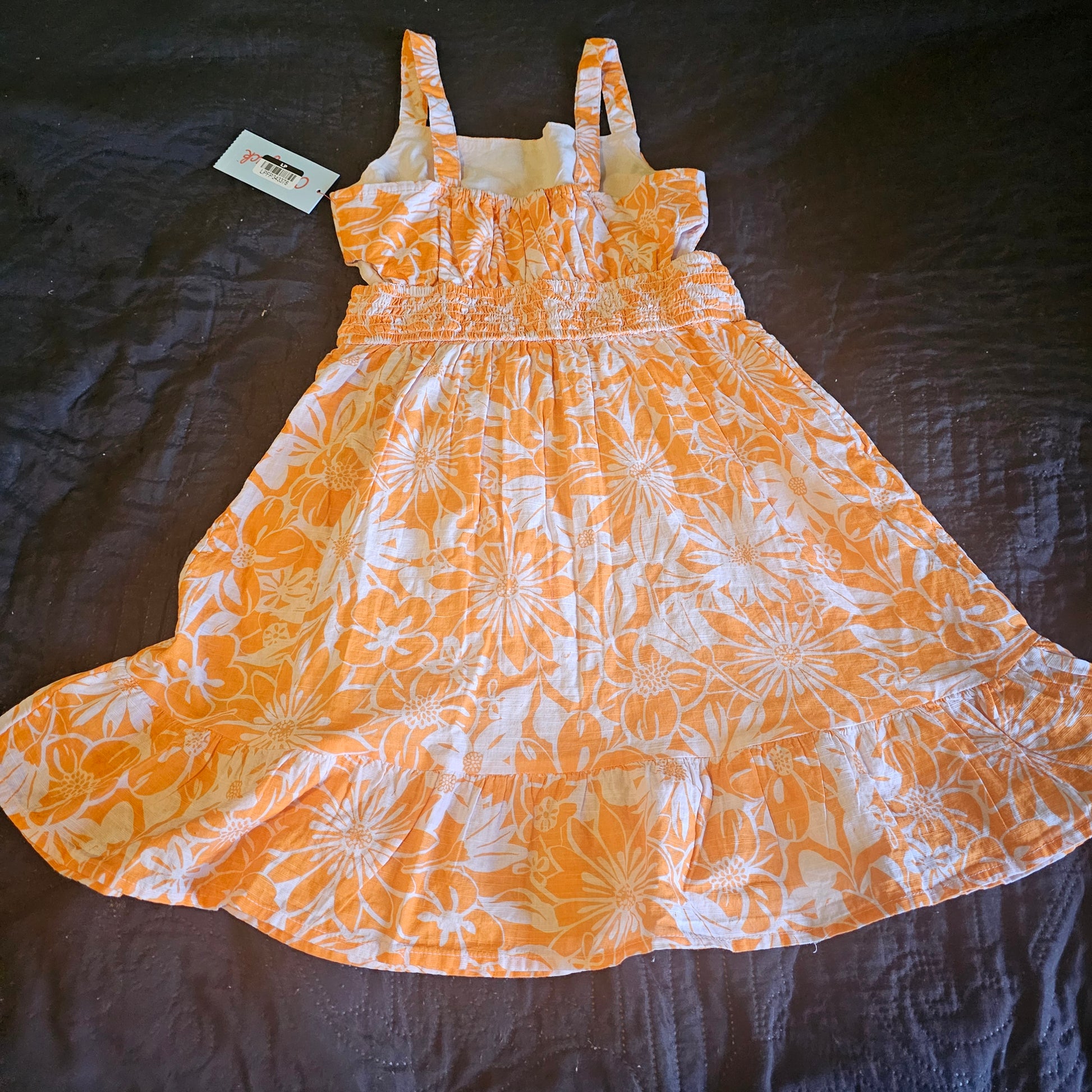 Update your toddler's summer outfits with the sweet style of this Floral Tank Dress from Cat & Jack™. This sleeveless orange tank dress with allover white floral print sports a square crewneck and crisscross detail at the back, along with a tiered design for added flair. The midweight fabric helps them stay comfy all day, and the pullover style allows for easy wear. Complete the look with sandals, slip-ons or sneakers.