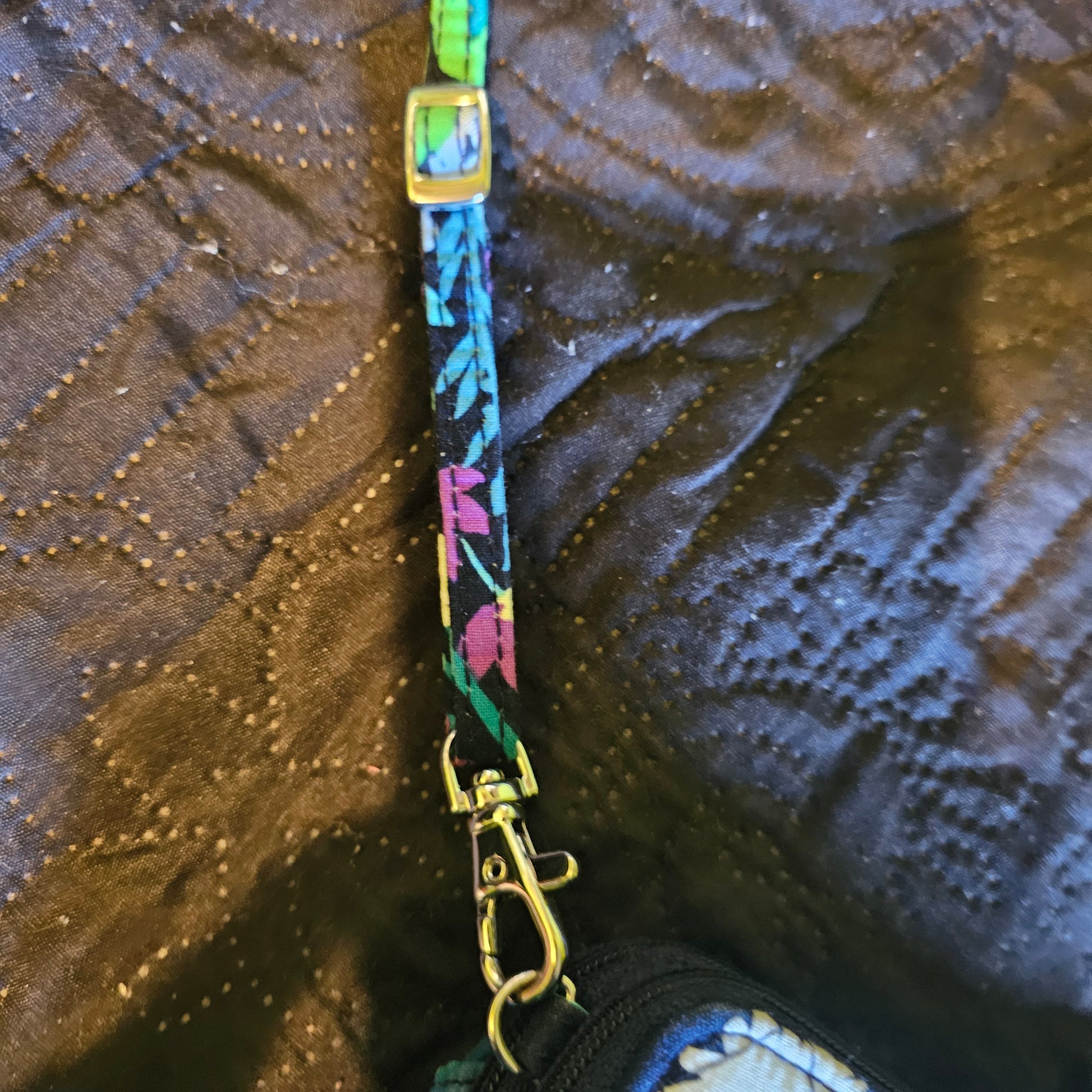 - Approx measurements (per photos): 6.5" W × 4" H × 2" D; adjustable strap ~22–24" drop