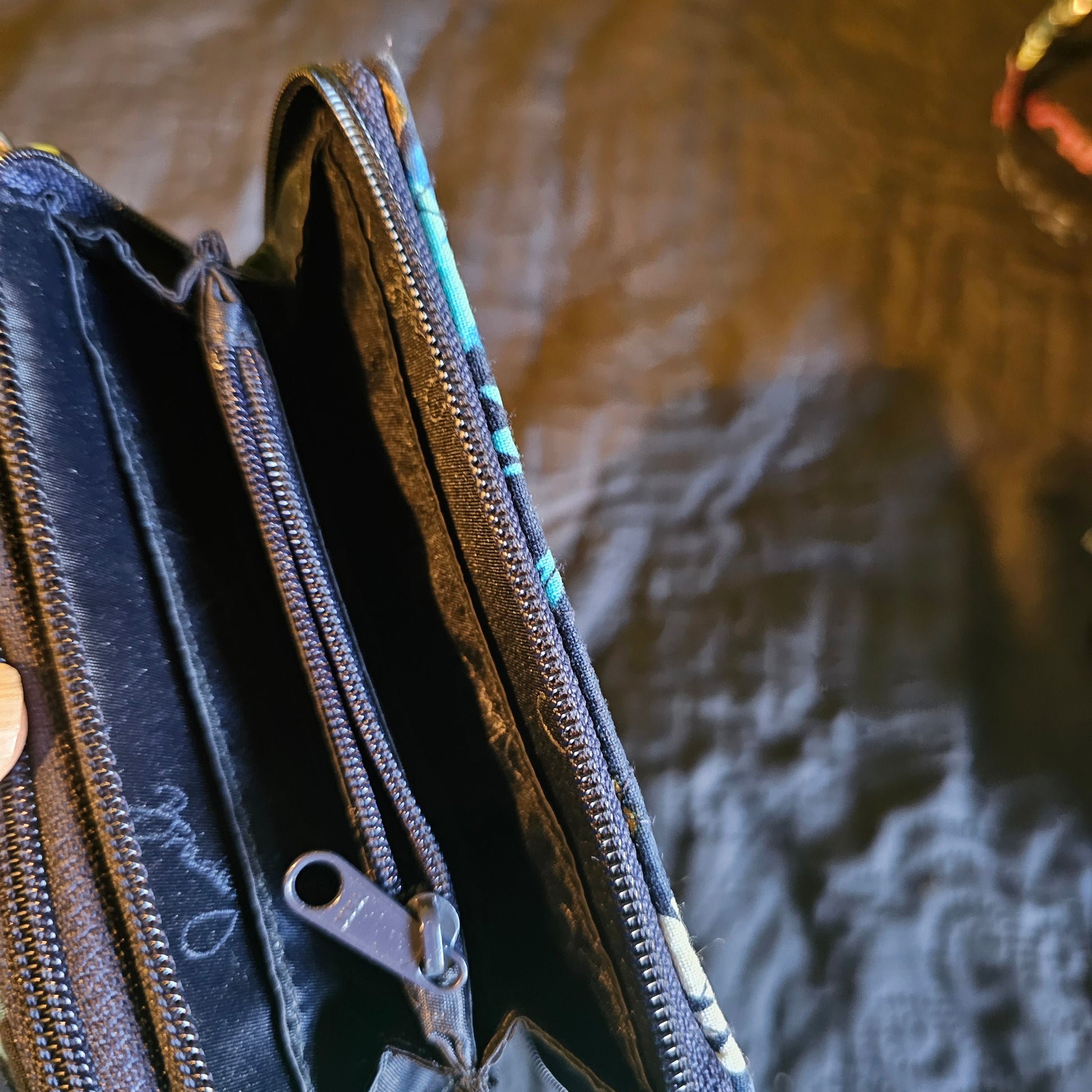 Quilted cotton mini crossbody wallet in a multicolor floral print.